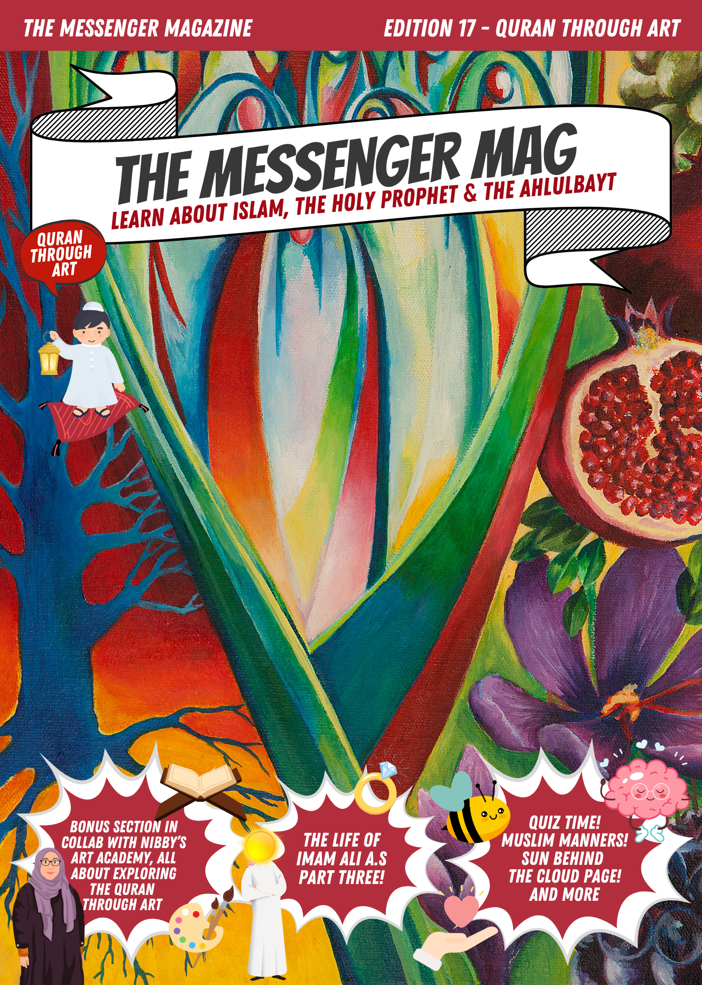The Messenger Magazine has launched the latest edition - Edition 17, all about Quran through Art. The edition includes part three of the life of Imam Ali a.s, Quiz Time, recipes and another two page spread from the wonderful Sun Behind the Cloud!
